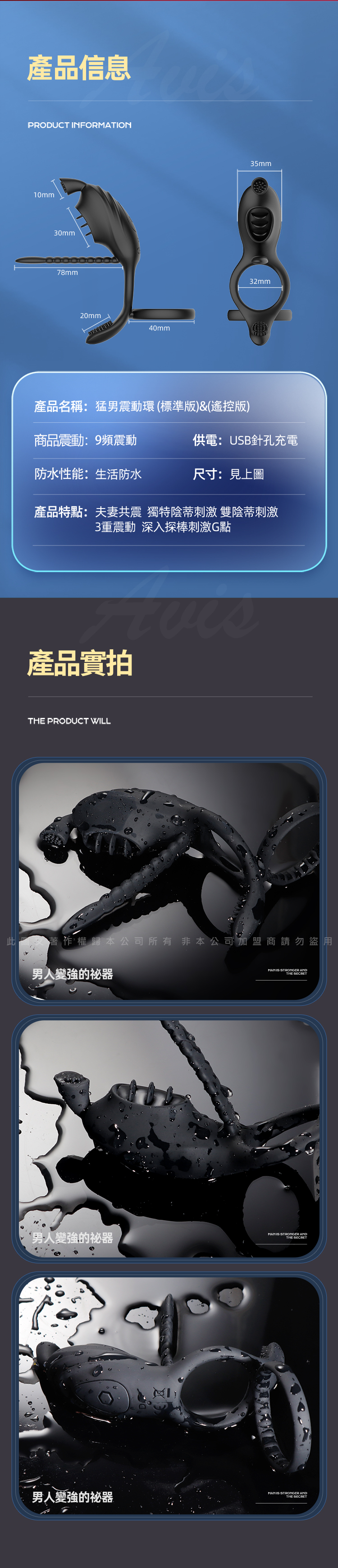 產品名稱:猛男|雙重舔震|矽膠鎖精震動環