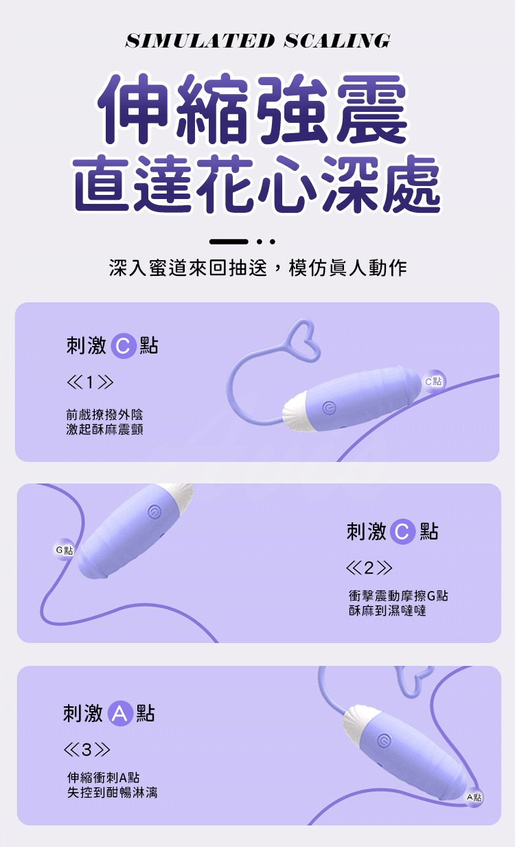 戴上後,仿真人體運動般的體驗將激發你的感官。隨著伸縮運動與強烈震動同步進行,提供層層遞進的刺激感受,讓你盡情探索極致的情趣之旅。