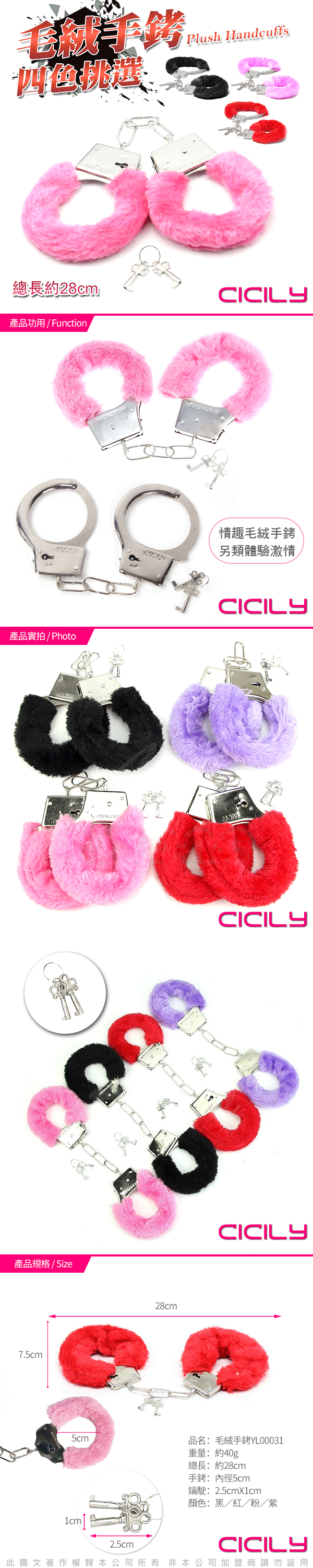 .商品內容:虐戀精品CICILY-俘虜絨毛手銬-紫   X1