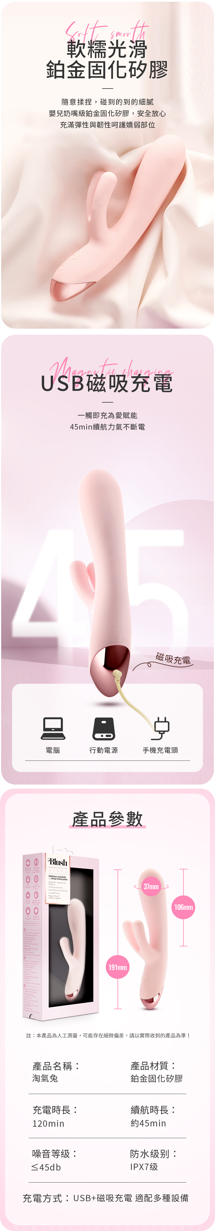 產品名稱: Blush|可愛淘氣兔Elora|三點刺激 鉑金矽膠按摩棒