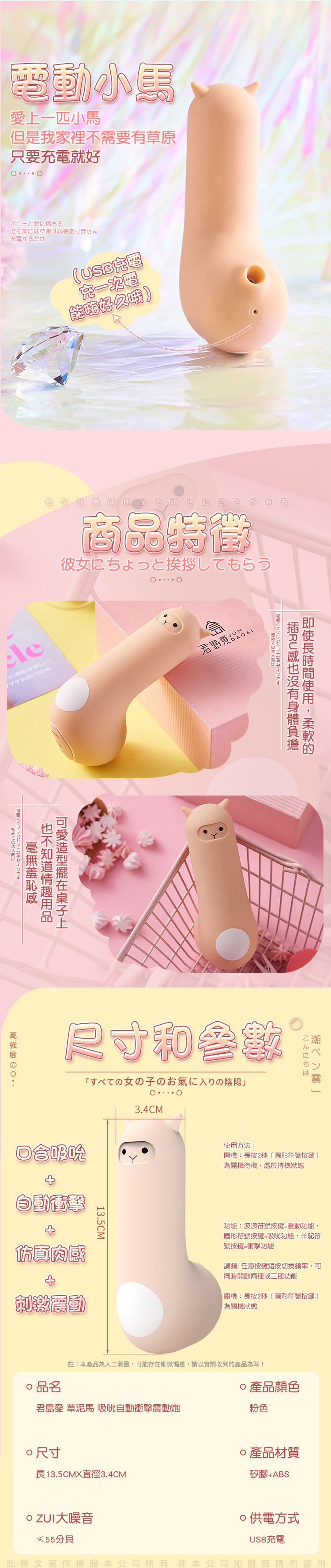 產品名稱:君島愛-草尼馬 吸吮+衝擊 震動按摩棒
