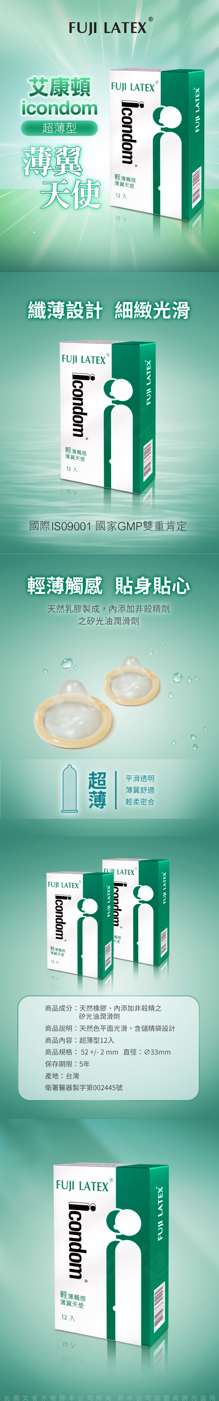 品名:FUJI-NEO|ICONDOM 艾康頓 薄翼天使|衛生套 保險套 12入