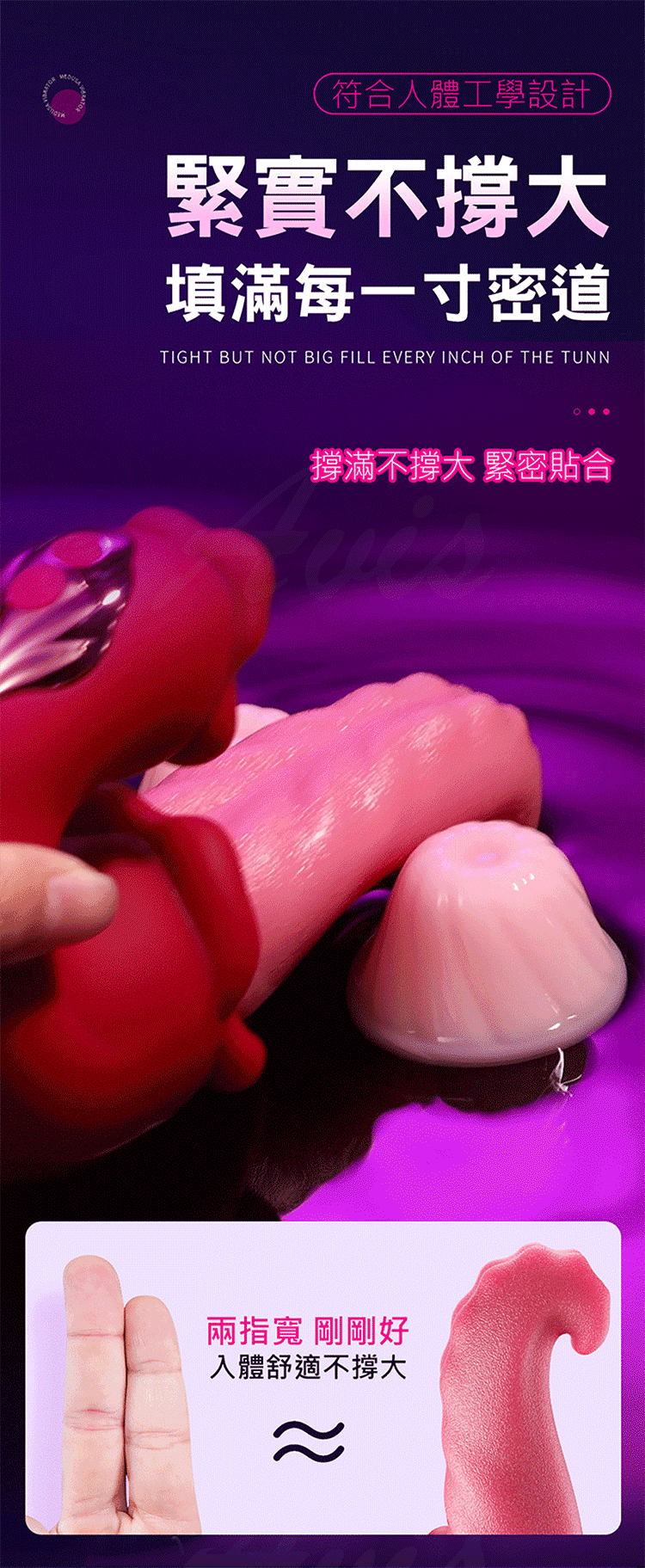 符合身體曲線的S型握柄設計,使用更順手,完美填滿蜜道,不撐大,帶來貼合舒適的私密按摩體驗。