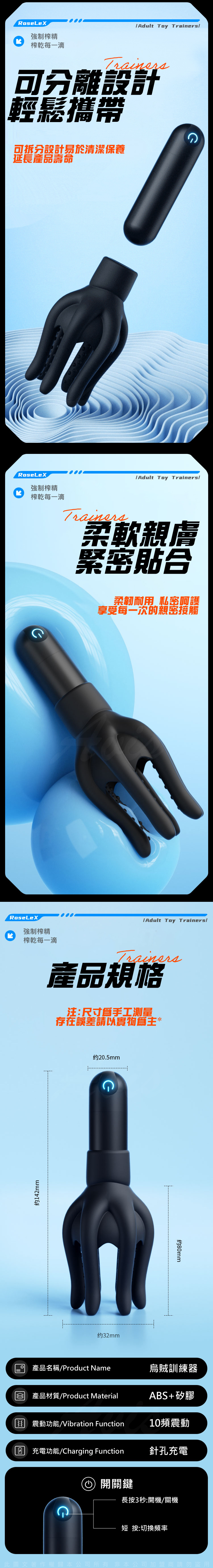 產品材質:ABS + 矽膠