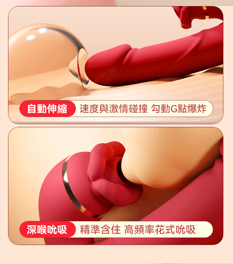 吸吮伸縮震動款*:吸吮和伸縮設計相結合,帶來更加多變和刺激的體驗。