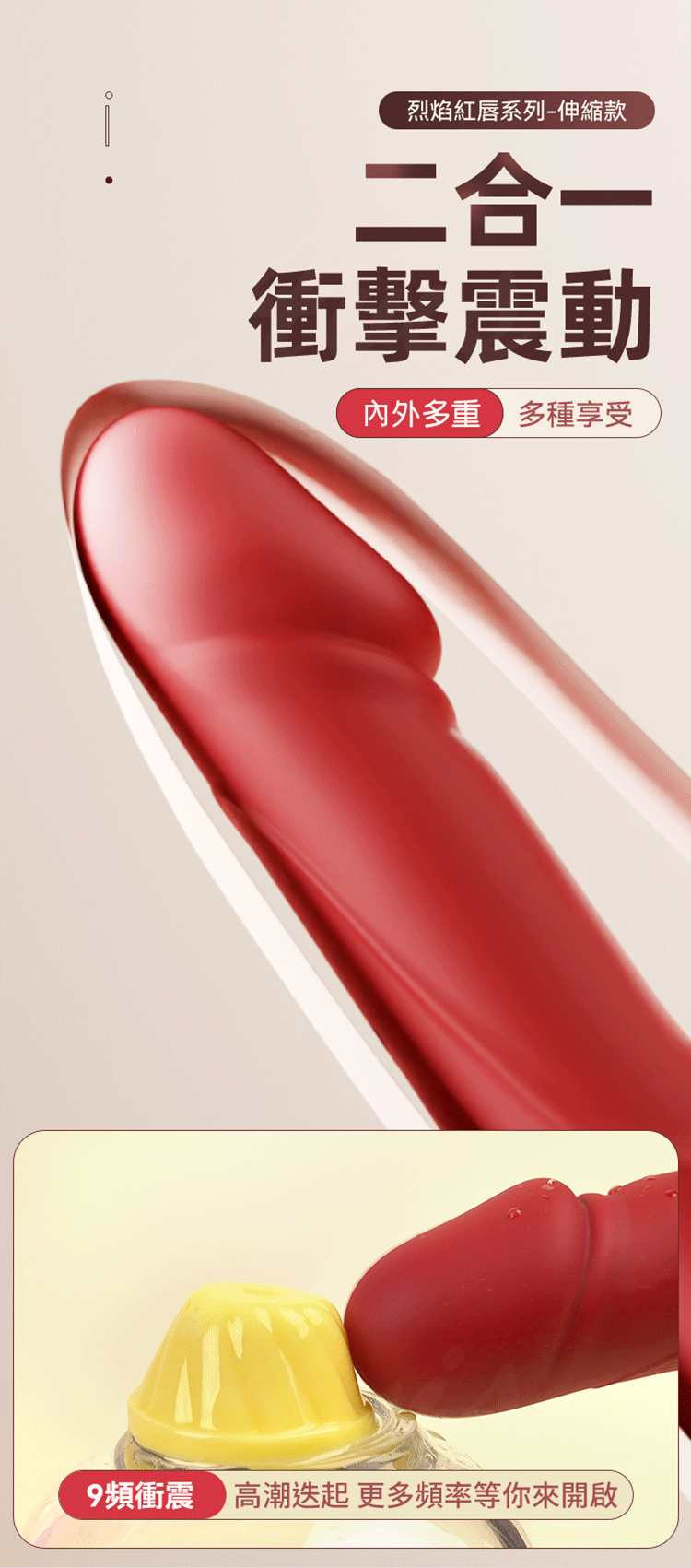 9頻衝撞模式:提供9種不同的衝撞模式,帶來強烈的震動刺激,滿足不同需求。