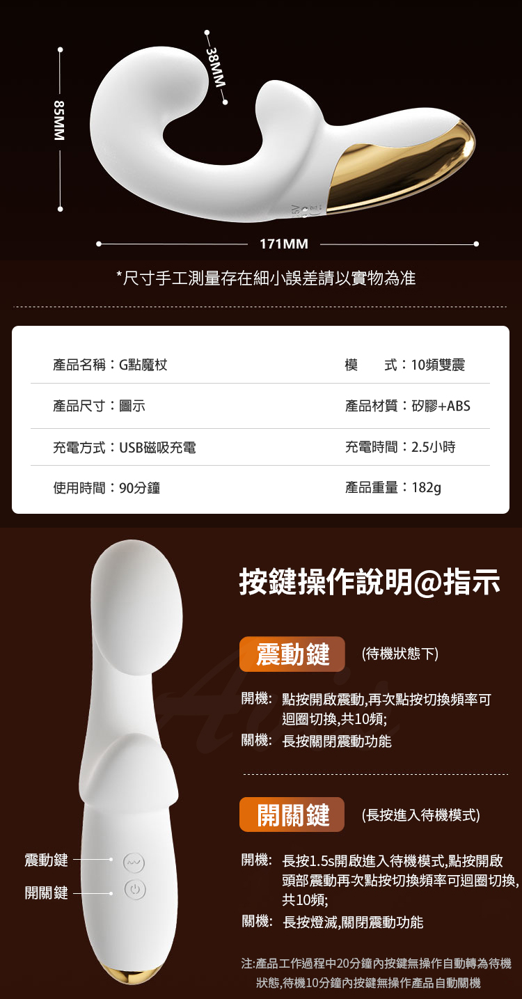 商品名稱:G點魔杖|龍骨設計|10頻智能按摩棒