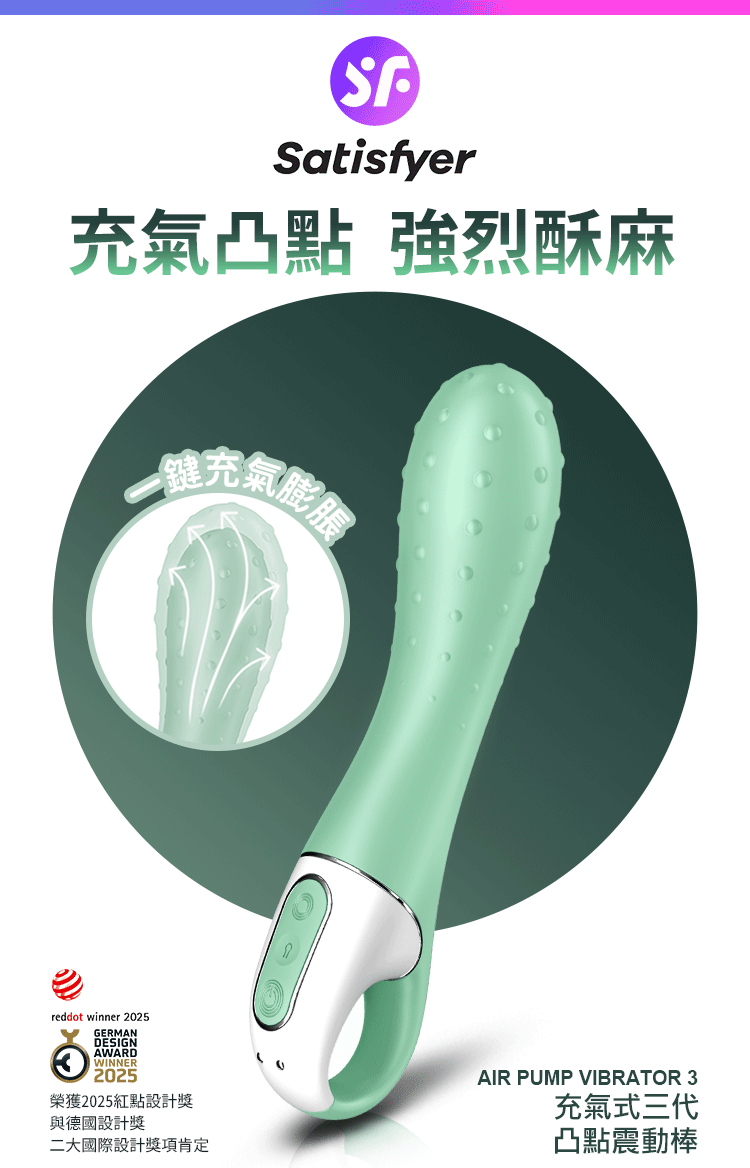 品名:Satisfyer|Air Pump Vibrator 3|充氣式凸點震動按摩棒 綠